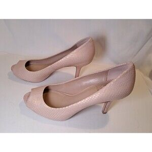 Vince Camuto Size 7B Kira Peep Toe Snakeskin Natural Pearl Heels 3" Leather