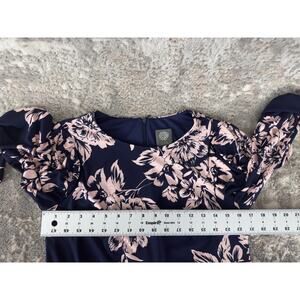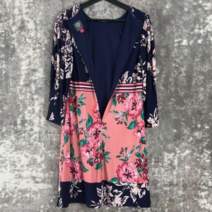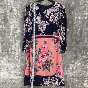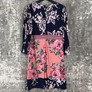 Vince Camuto Size 8 Floral Striped Knee Length Shift Dress Navy Pink 3/4 Sleeve