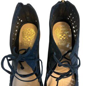 This stylish high ankle shoe is crafted by the renowned Vince Camuto brand. Made from luxurious leather suede, it features a chic tie-up closure complemented by a convenient back zipper.