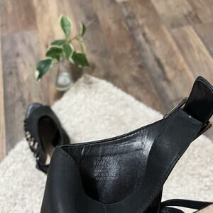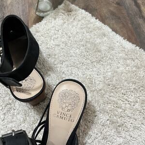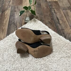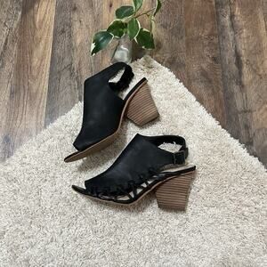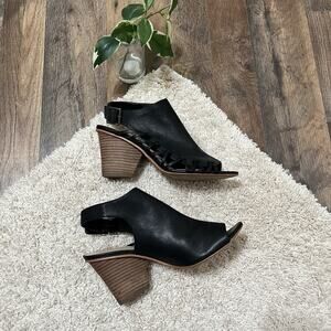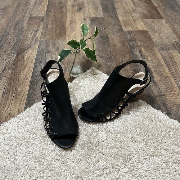 Vince Camuto Size 8.5 M Black Leather Woven Peep Toe Ankara Heels Sandals