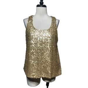 Vince Camuto Size X Small NWT Gold Sequined Sleeveless Asymmetrical Top