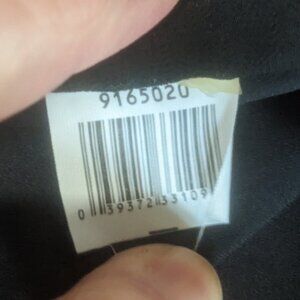 Sheer black, with black rhinestones around collar, and big, bold orange/pink abstract flowers. The front crosses over, which I'm trying to show in pictures 3 and 4. There's a keyhole below the collar of jewels, then the crossover fabric, secured by a snap at the bottom of the keyhole. The hem is a high/low design, in photo 12 the difference in length between the front and back is shown. Very feminine and perhaps a little flirty as well.