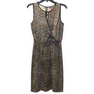 Vince Camuto Sleeveless Leopard Print Draped Chest Faux Wrap Midi Dress Size 4.