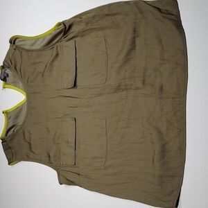 Light weight polyester Vince Camuto Sleeveless Top with front pockets in Great Condition. See photos for measurements. Great for summer wear.