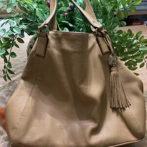Material: Soft pebble leather Color: Warm tan / camel
