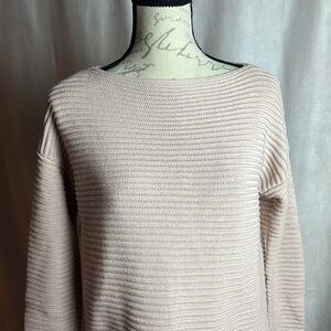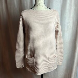Vince Camuto Small Ribbed Boatneck Sweater Pink Rose Color Tunic Style
