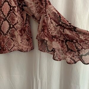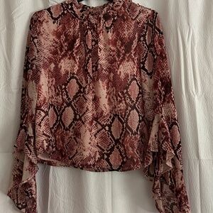 Vince Camuto Snake Print Flutter Bell Sleeves Side Buttons Blouse, Size S
