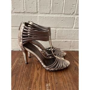 Vince Camuto Snakeskin Sarea Silver Strappy Zip Sandals/Heels Size 6B