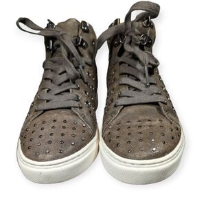 Vince Camuto Sneakers Gargoyle Gunmetal Stud Detailed Bestinda Suede Lace Up NIB