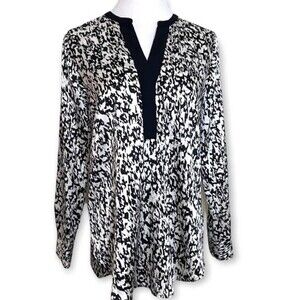 Vince Camuto Split V Neck Abstract Print Tunic Top M