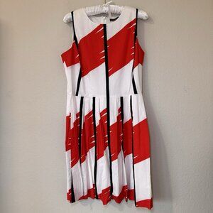 Vince Camuto Stripe Red Black white Midi Dress Size 8 Fit And Flare