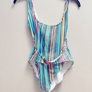 Vince Camuto Striped Women's High-Leg Cut-Out One-Piece Swimsuit swimwear 10 New