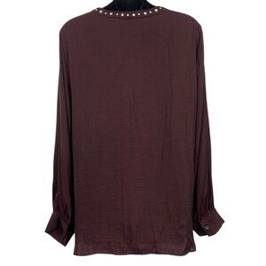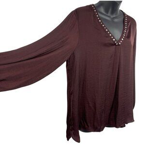 Vince Camuto Stud V-Neck Tunic Blouse Large Burgundy Beaded Long Sleeve NWT New