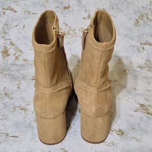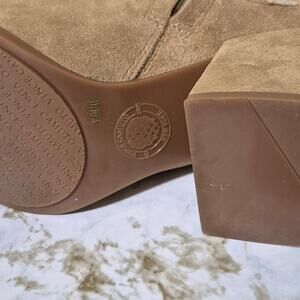 Vince Camuto Suede Ankle Boots Womens 9 1/2 M Pailey Camel Tan Block Heel Zip