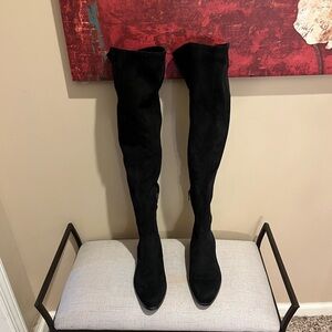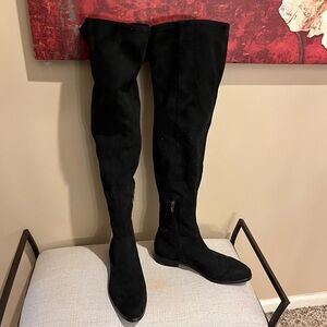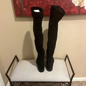 Vince Camuto Suede Black Over-the-Knee Low Heel Boots, size 8.5