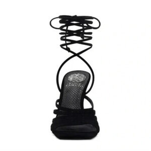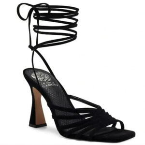 Vince Camuto Suede Black Roselian Sandal size 5. EUC. Small marks on heels themselves in photos.