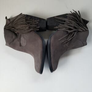 Lead Gray Vince Camuto Suede Leather Boots with fringe and Chunky Heel Western Boho