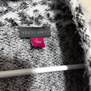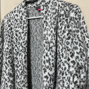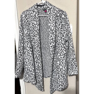 Vince Camuto Sweater Cardigan Womens L Soft Fuzzy Open Snow Leopard Eyelash