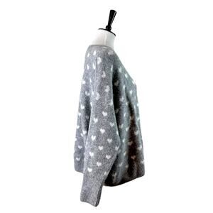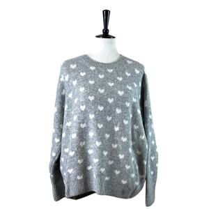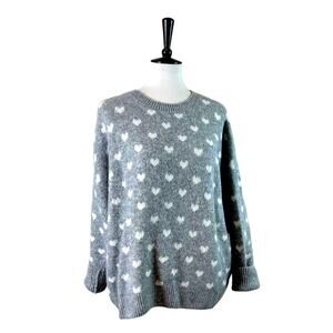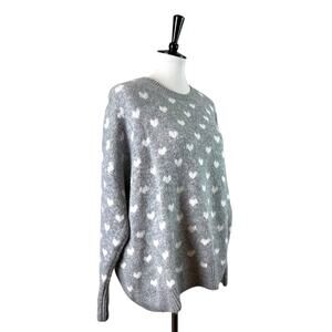 Vince Camuto Sweater Crew Neck Fuzzy Soft Oversize Gray Heart Women Size Large