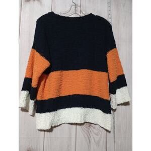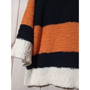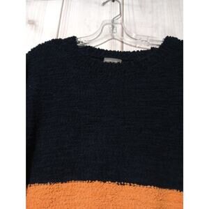 Vince Camuto Sweater Womens Small Navy Orange White Striped Soft Fuzzy Pullover