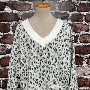 Vince Camuto Sweater Women’s X Large Grey White Leopard Print V-Neck Metallic