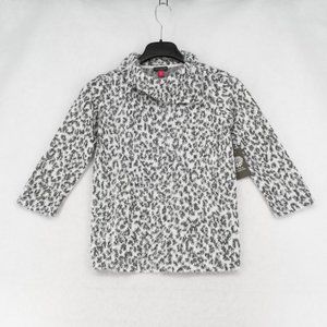 Vince Camuto Sweater XXS Fuzzy Animal Fold Over Neck Pullover 3/4 Sleeve Printed