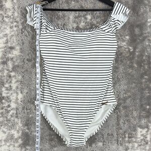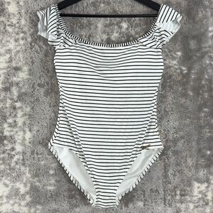 Vince Camuto Swim Size 14 Striped Boat Neck Once Piece Pull On White Short Sleev