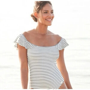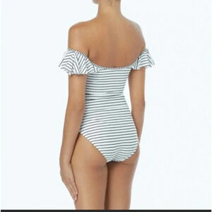 Vince Camuto Swim Striped off shoulder One-Piece Swimsuit White Size 10