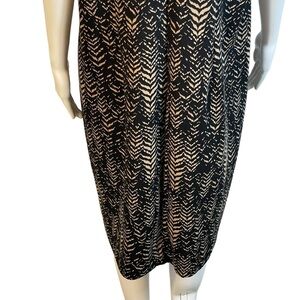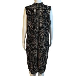 Vince Camuto Sz 1X Black Tan Leaf Pattern Sleeveless Mock Neck Stretch Dress