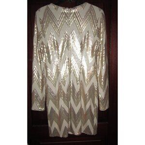 Vince Camuto Sz 4 Mini Dress Short Sequins Fitted Stretch Gold White Long Sleeve