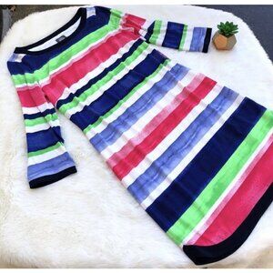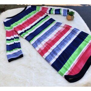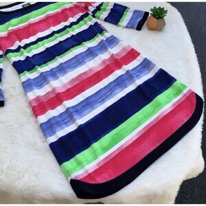 Vince Camuto Sz 6 Rainbow Watercolor Stripe Slinky Shift Dress s Color Block