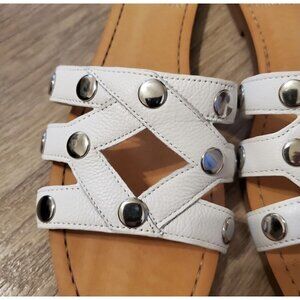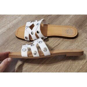 Vince Camuto Sz 7 M White Leather Studded Sandals Slides Flip Flop Womens