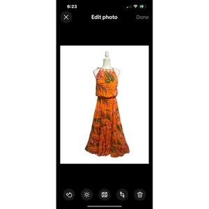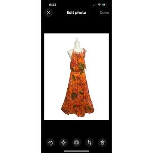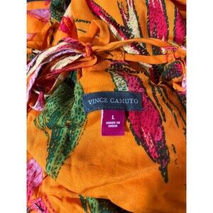 Vince Camuto Sz. Large NWT Tiered High-Neck Leaf-Print Maxi Dress Tropical Flowy