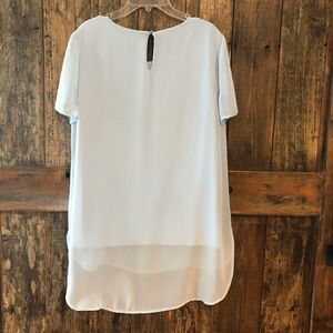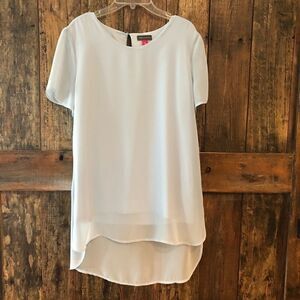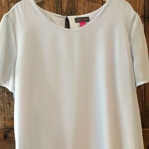 Vince Camuto Sz S Light Blue Sheer Overlay Relaxed Flowy Short Sleeve Tank Top
