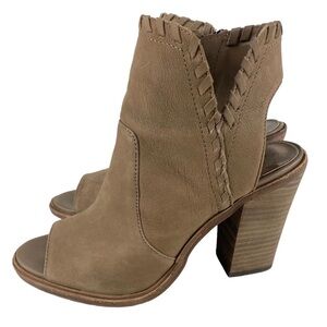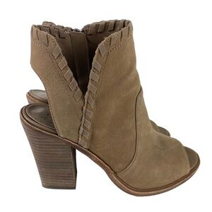 Vince Camuto Tan Ankle Boots Leather Women’s Size 7.5 Open Toe/Heel Brown Suede