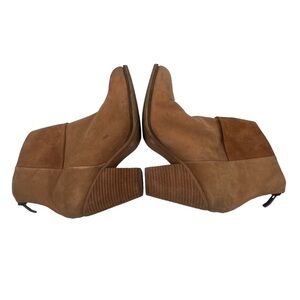 Vince Camuto Tan Camel Brown Suede Block Heel Ankle Boots Size 8 1/2 Women's