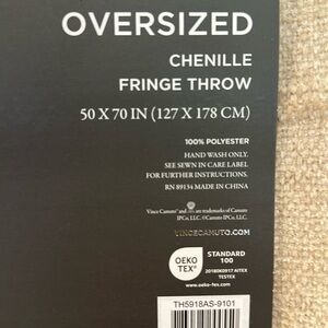 Elegant Vince Camuto chenille throw blanket in tan. Features a stylish fringed edge. 50x70 inches.