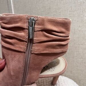 Elevate your style with Vince Camuto's tan heeled boots, perfect for adding a touch of elegance to any outfit. These boots feature a sleek design and a comfortable heel height, making them ideal for both casual and formal occasions. Crafted with attention to detail, they offer a timeless look that complements any wardrobe.