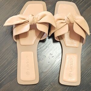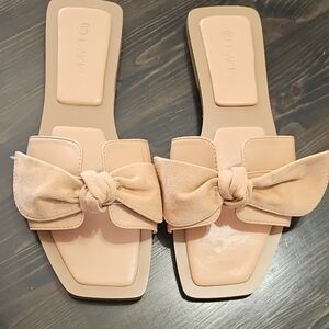 Vince Camuto Tan Slide Sandals with Bow Accent, Size 7.5