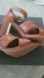 Leather Vince Camuto sandals with studded straps. Features a sturdy block heel and adjustable ankle strap. Ideal for stylish outings. New in box. Minor flaws shown in pics.