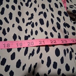 Stylish Vince Camuto blouse. Tan with black spots. V-neckline. Long sleeves. Perfect for any occasion.