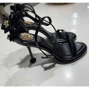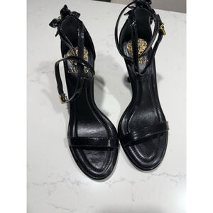 Vince Camuto Tanvie Black Patent Floral Heel Sandals Women’s Size 8 NWOB