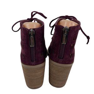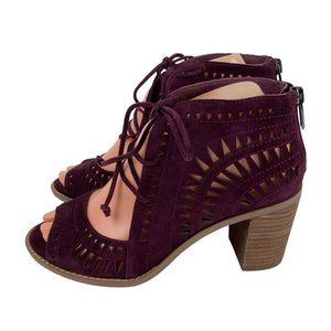 Vince Camuto Tarita Cut Out Lace Up Burgundy Suede Open Toe Heeled Bootie Size 6