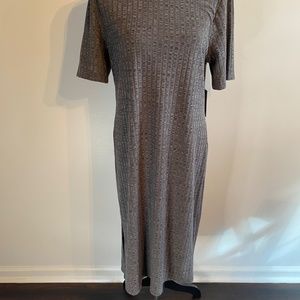 Brand new with Tag! Grey mid calf Tee Shirt dress with a slit up one side.