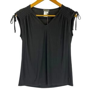 Vince Camuto Tie Shoulder V-Neck top rich black - S