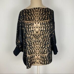 Brown and Black Vince Camuto top with different material by the sleeves to give it the fitted end look