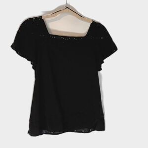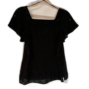 Vince Camuto Top S Black Flutter Sleeve Square Neck Eyelet Boho Chic Casual