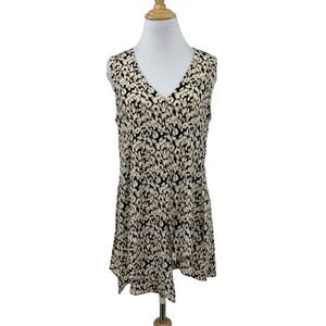 Vince Camuto Top Womens M Medium Brown Black Animal V Neck Asymmetric Layer Hem