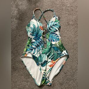 Vince Camuto Tropical Print Strappy Plunge Swimsuit NWT Size 10