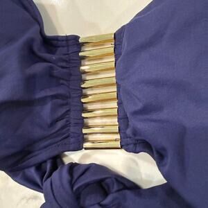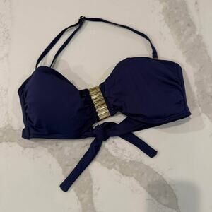 Vince Camuto Tube Bra Bandeau Bikini Top Metallic Hardware Womens Large NavyBlue